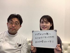 ぎっくり腰になり、評判が良かったので来院したのですが、1回の施術でとても症状が軽くなりました!