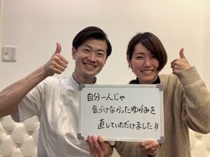 当院の施術は、原因の発生源に直接アプローチする施術ですので、初回体験から効果をすぐに実感できます。帰宅後のケア方法も施術後にお伝えさせていただいております。