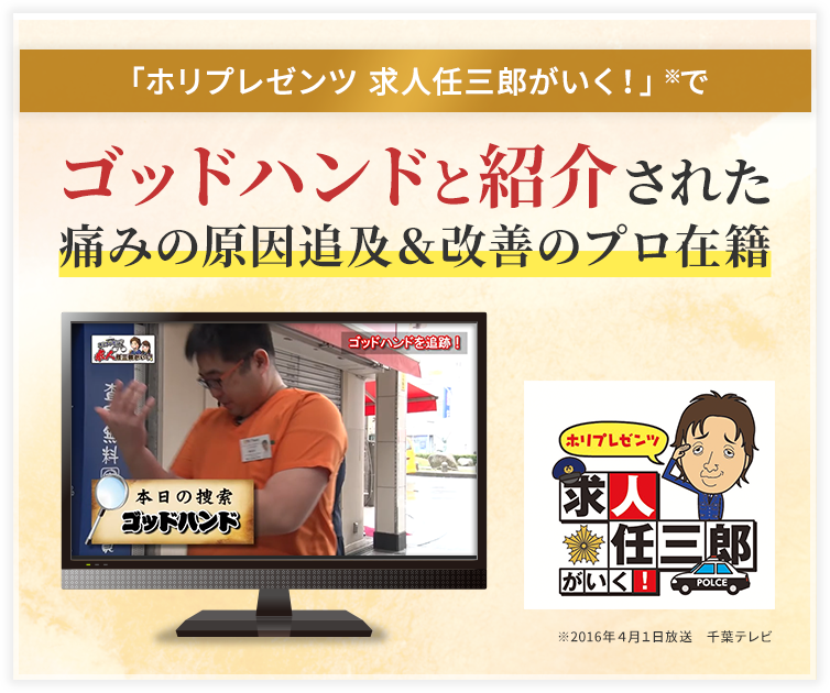 ゴッドハンド施術者として、TVでも特集が組まれ紹介された実績がございます。