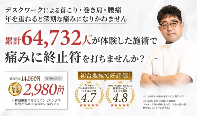 他のどの整体院よりも早く痛みを改善できる自信があります。
